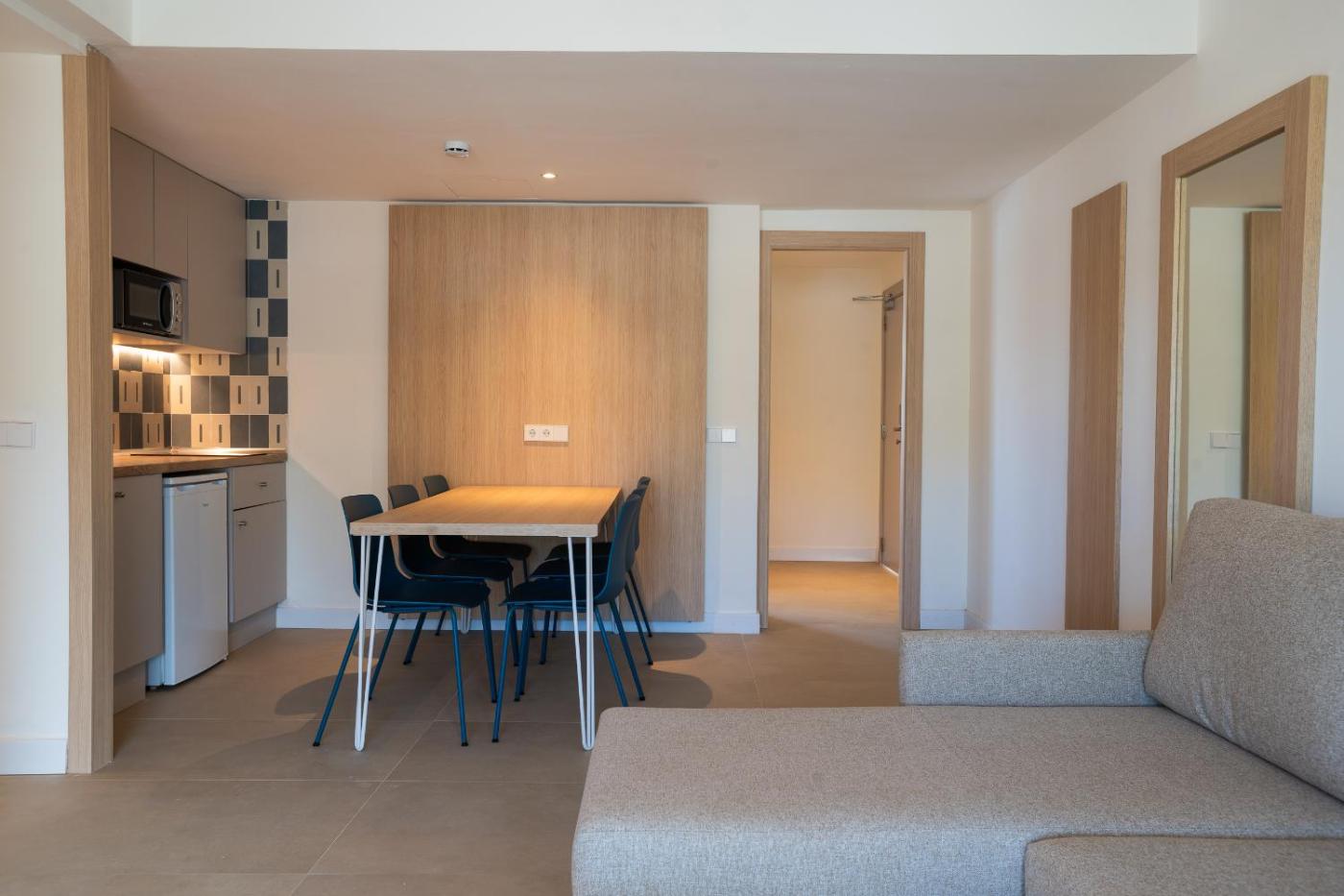 Los apartamentos cuentan con suelo de baldosa, mobiliario de madera, cocina pequeña con fogones, hervidor eléctrico, cafetera y microondas, baño con secador de pelo, caja fuerte de alquiler disponible en la recepción 24 horas y WiFi gratuita.
